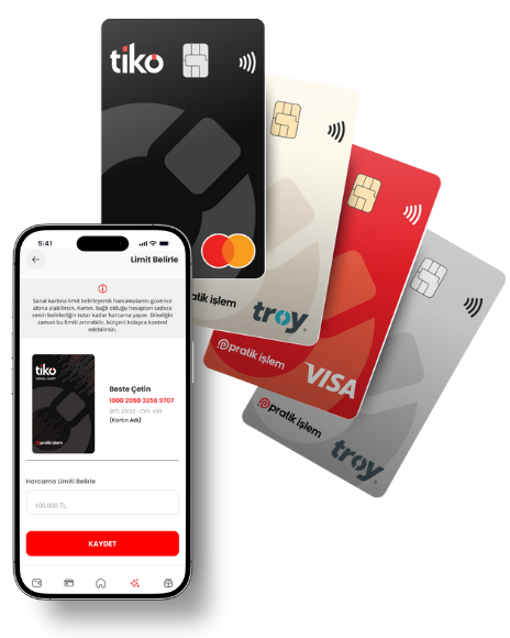 İster online ister fiziksel dünyada harcama yap, Tiko’nun sunduğu sanal ve fiziksel kart seçenekleriyle her işlemde hız, güvenlik ve avantaj seninle.